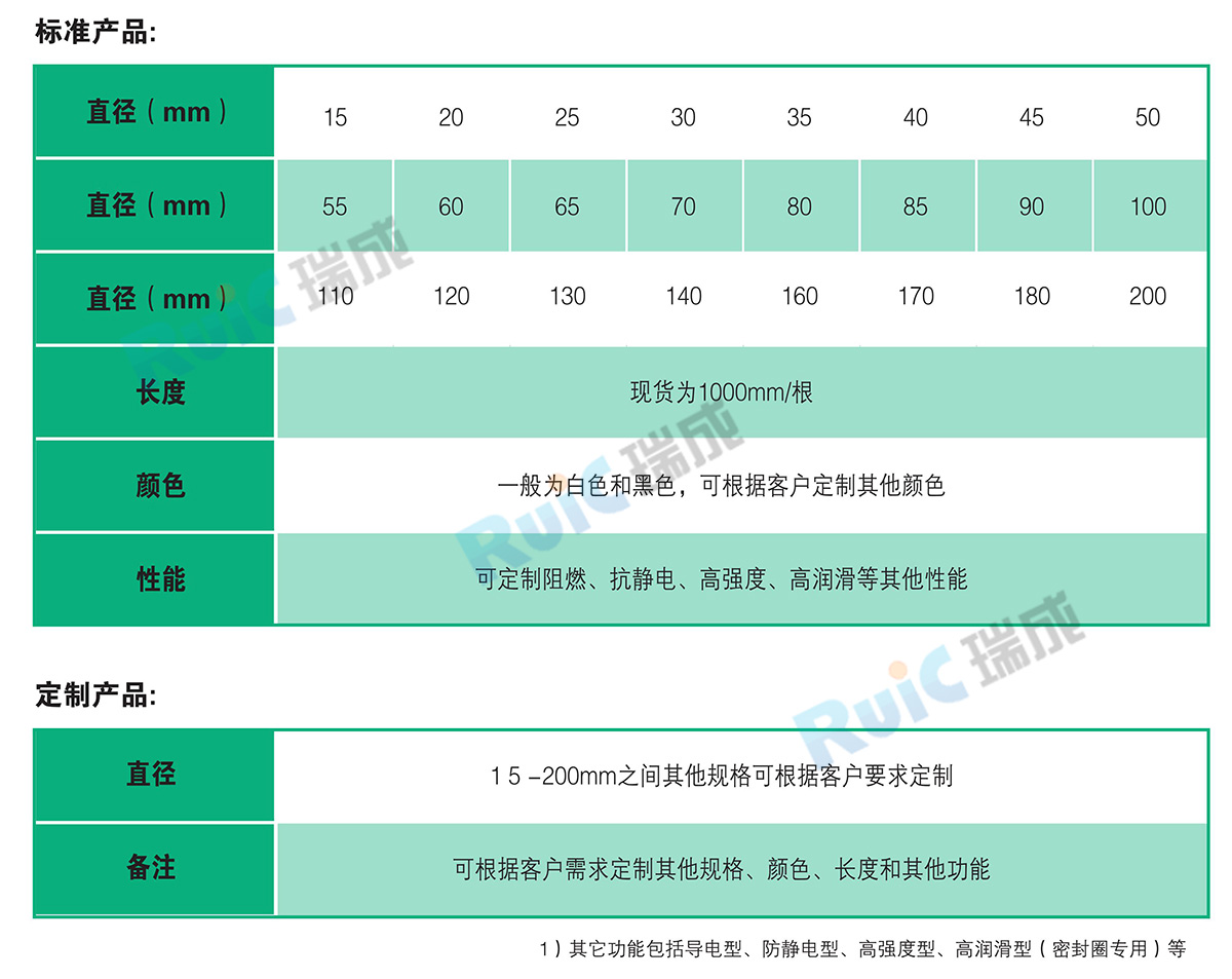 我司生產的超高棒材具有極好的耐磨性.良好的耐低溫衝擊性、自潤滑性、無毒、耐水、耐化學藥品。機械性能極高.具有突出的抗衝擊性、耐應力開裂性、耐高溫蠕變性、低摩擦係數、自潤滑性,卓越的耐化學腐蝕性、抗疲勞性、噪音阻尼性、耐核輻射性等,可以代替碳鋼、不鏽鋼、青銅等材料用於紡織、造紙、食品機械、運輸、醫療、煤礦、化工等行業。超離分子且聚乙烯簡介水蜜桃视频在线看烯(UHMW-PE)是指平均分子量超過150萬的線型聚...